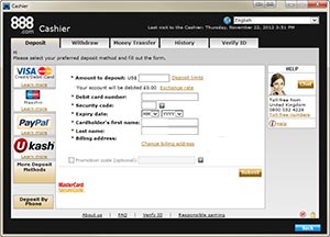 This will take you to the cashier screen, where you can fund your player account ready to play at the tables. 888 Poker accept most major payment methods and these are listed down the left hand side of the screen. Click on your preferred payment method and then proceed to complete the short form with your details associated with that payment method.